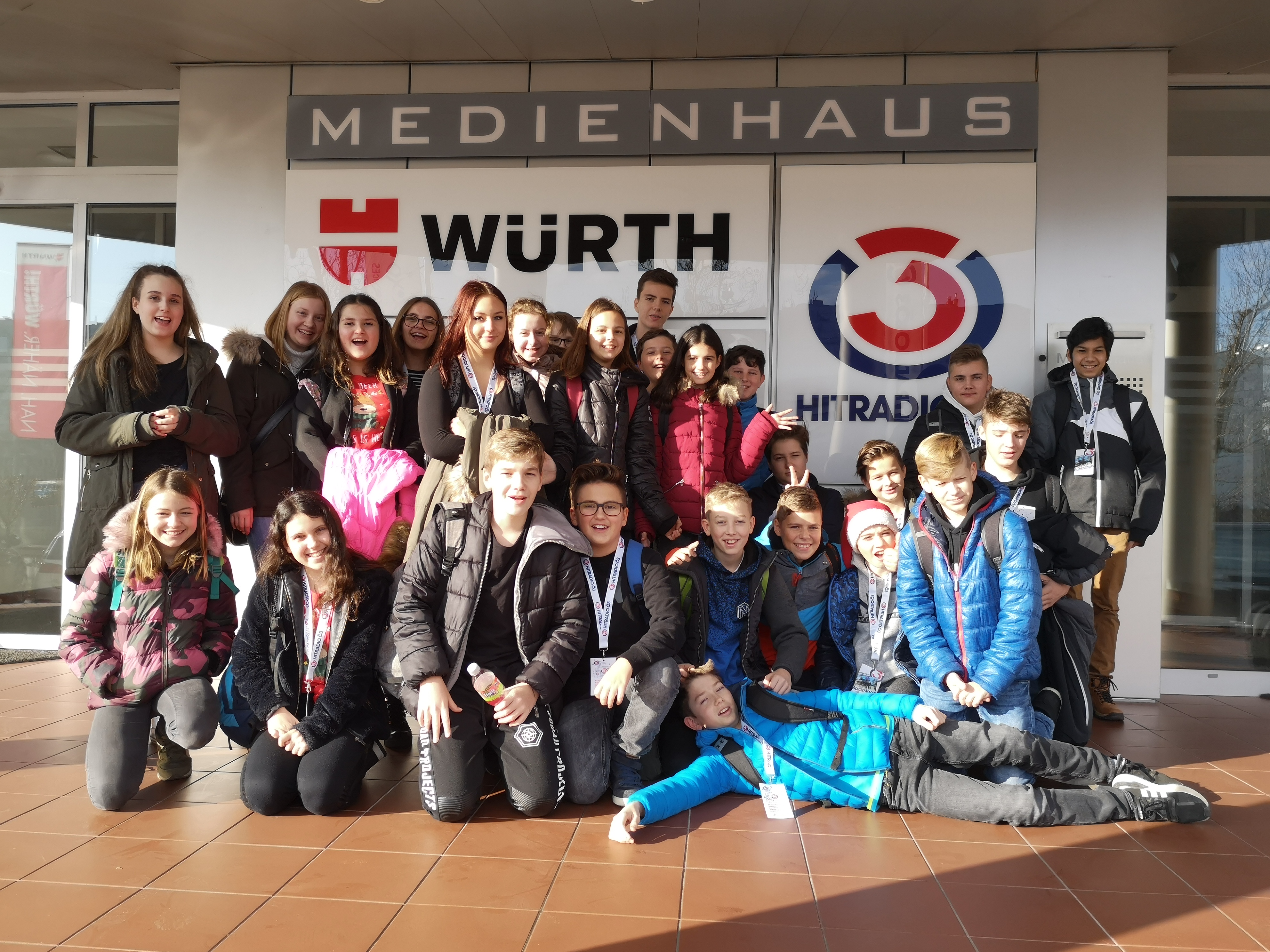 Nach einer Fahrt von etwa zwei Stunden kamen bei Ö3 an und bekamen eine Führung durch das Studio. Wir hatten von Ö3 eine andere Erwartung und waren leider nach einer kurzen Führung etwas enttäuscht. Wir freuten uns schon auf das Aufnehmen für eine Sendung, die wir uns danach anhören wollten. Wir durften zwar kurz ein paar Zeilen über das Weihnachtswunder sagen aber der Begleiter sagte, dass es nicht sicher war, dass diese Aufnahme dann im Laufe des Weihnachtswunders überhaupt zu hören wäre. Auch konnten wir das große Studio nicht besichtigen da es besetzt war. In das kleinere Studio passten wir nicht alle hinein, deswegen durften wir nur bei der Tür hineinschauen.